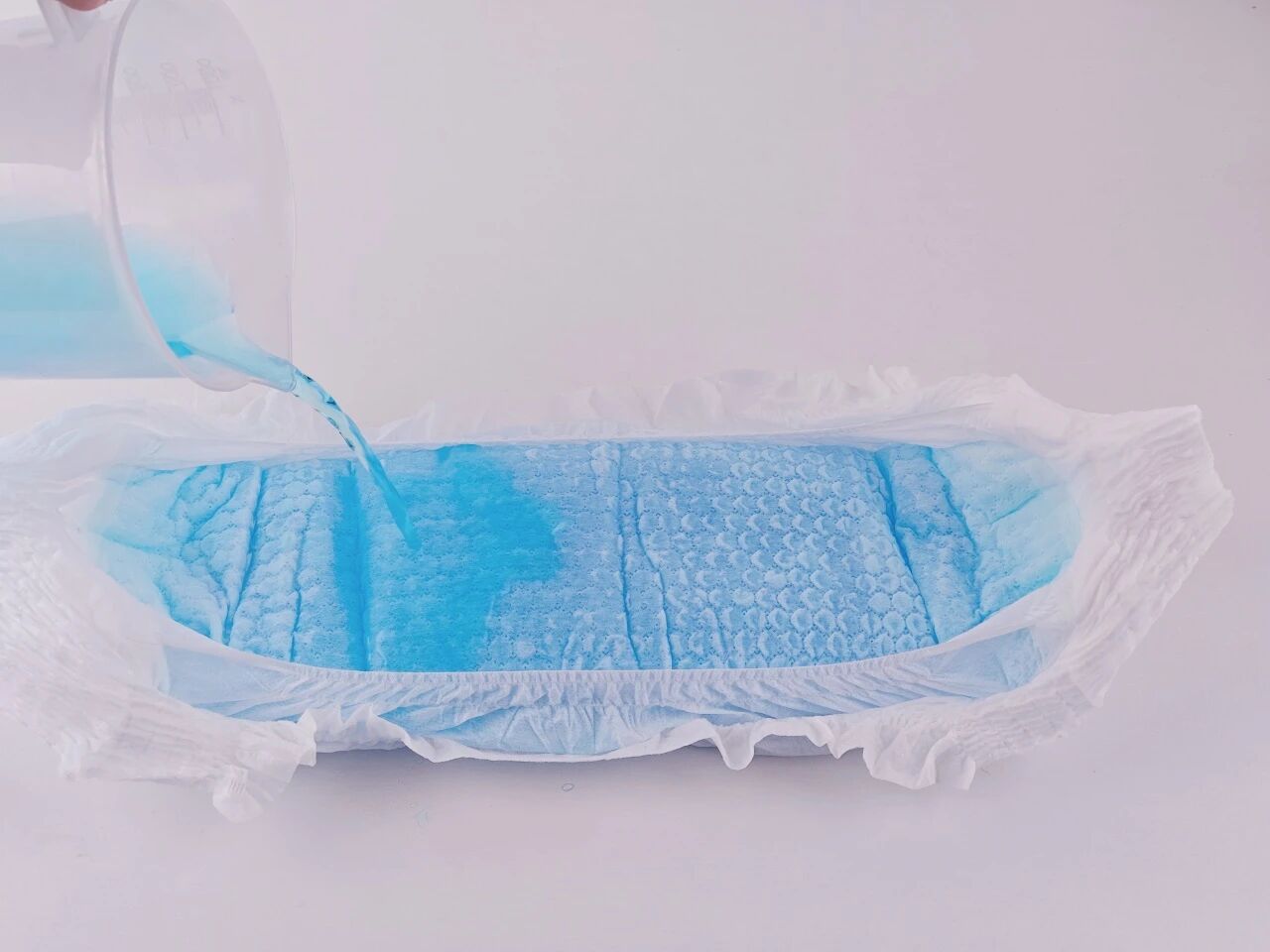 Quando 600 ml de urina simulada (equivalente a cerca de 8 a 10 micções do bebê) são despejados uniformemente no produto, a superfície permanece seca, o que significa que uma única peça pode atender às necessidades do bebê durante o uso noturno prolongado.